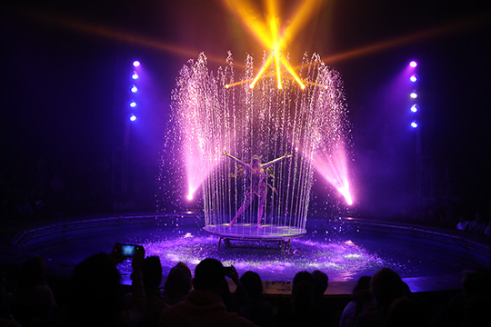 Una idea magnĆfica, Ā”una delicia para todos los sentidos!, llevada a cabo por autĆ©nticos profesionales de lo fantasioso. El exitoso Circo AlegrĆa, de renombre nacional e internacional, ha enamorado a miles de espectadores de todo tipo de pĆŗblico con sus deslumbrantes propuestas y, como podrĆ”s ver, hay una sencilla razón: Ā”son increĆbles! En el arte circense que te presentan estos maestros y maestras encontrarĆ”s actuaciones de esas que te dejan con la boca abierta, con los ojos como platos. Las plataformas ascendentes y descendentes otorgan al espectĆ”culo un carĆ”cter móvil, lo que harĆ” de tu experiencia un verdadero viaje a lo mĆ”gico. PodrĆ”s presenciar las cautivadoras fuentes danzantes: Ā”el agua cobra vida!