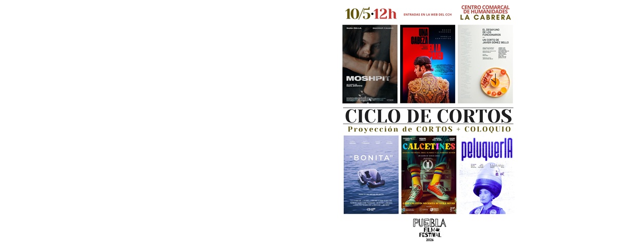 El Ciclo de Cortos presenta una selección de los cortometrajes ganadores de la edición anterior del Puebla Film Festival, celebrada en 2025. La proyección tendrá una duración aproximada de 75 minutos y será seguida de un coloquio con la participación de algunos/as de los/as directores/as y del público.
