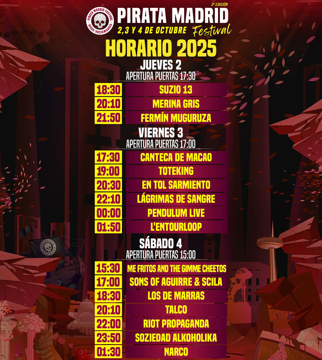 Congratulations! You are the first to post a fan report for Pirata Madrid Festival.