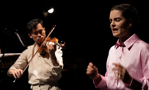 IntĆ©rpretes: Aaron Lee (violinista y actor), MarĆa Romero (actriz) / Paula GarcĆa Lara (actriz) y Miguel Ćngel Castro (pianista)