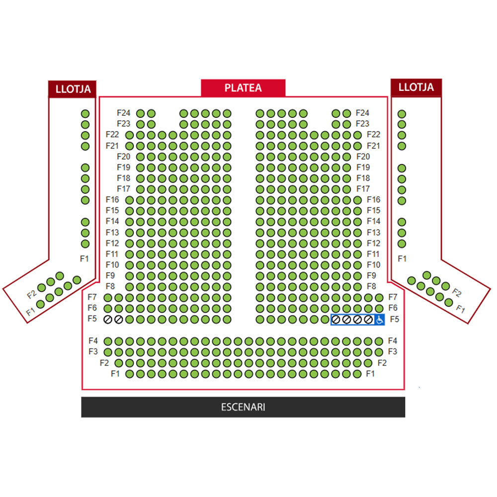 Esta opción te permite comprar exactamente los asientos que tú elijas sobre el plano de butacas. Ábrelo para una visión general de todos los asientos disponibles y haz clic en las zonas y precios que desees. Las butacas de color gris no están disponibles, por lo que no son seleccionables
