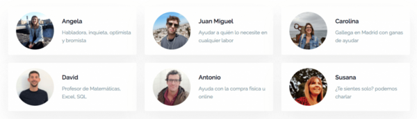 Ante la proclamación del estado de alarma y la limitación del libre movimiento en todo el territorio español, la plataforma ha segmentado a los voluntarios por zonas geográficas. Por lo que la persona que solicite ayuda podrá buscar voluntarios en su ciudad para aquellas asistencias que requieran cercanía física como hacer la comprar en el supermercado o acudir a la farmacia a por medicamentos.