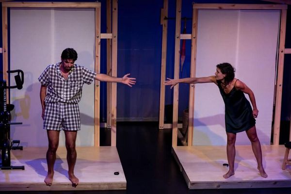 Con humor y poesía en su acción, aunque los diálogos sean cotidianos, Montajes en el abismo nos ofrece esta producción con texto de Jorge Jimeno, que también lo interpreta, junto con Ana de la Hoz, y se hacen querer y se hacen nuestros. Verónica Pérez, en la dirección, les indica la dirección del viento. La del tiempo y la del juego. La de la sonrisa en vez del drama, la del teatro y la realidad a partes iguales, la del abismo (como la compañía) y la de la sujeción a la barandilla, la del vuelo y la de los pies en el suelo.